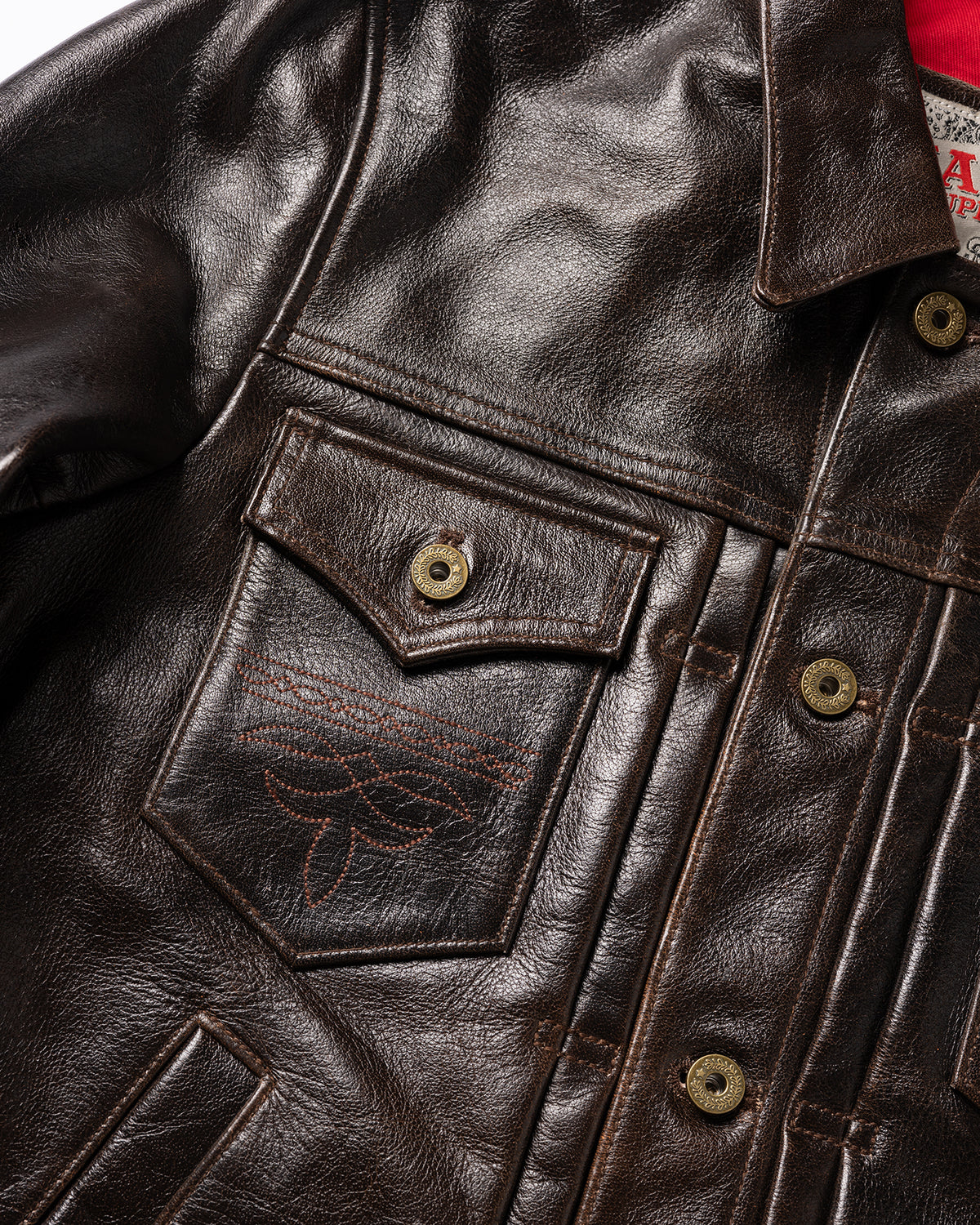 Inspired by the golden era of classic workwear, The Convoy Rust features a pleated front design reminiscent of vintage trucker jackets, paired with two chest pockets adorned with subtle western stitching. Inside, the jacket is lined with a 100% cotton red twill, adding both bold contrast and breathable comfort.